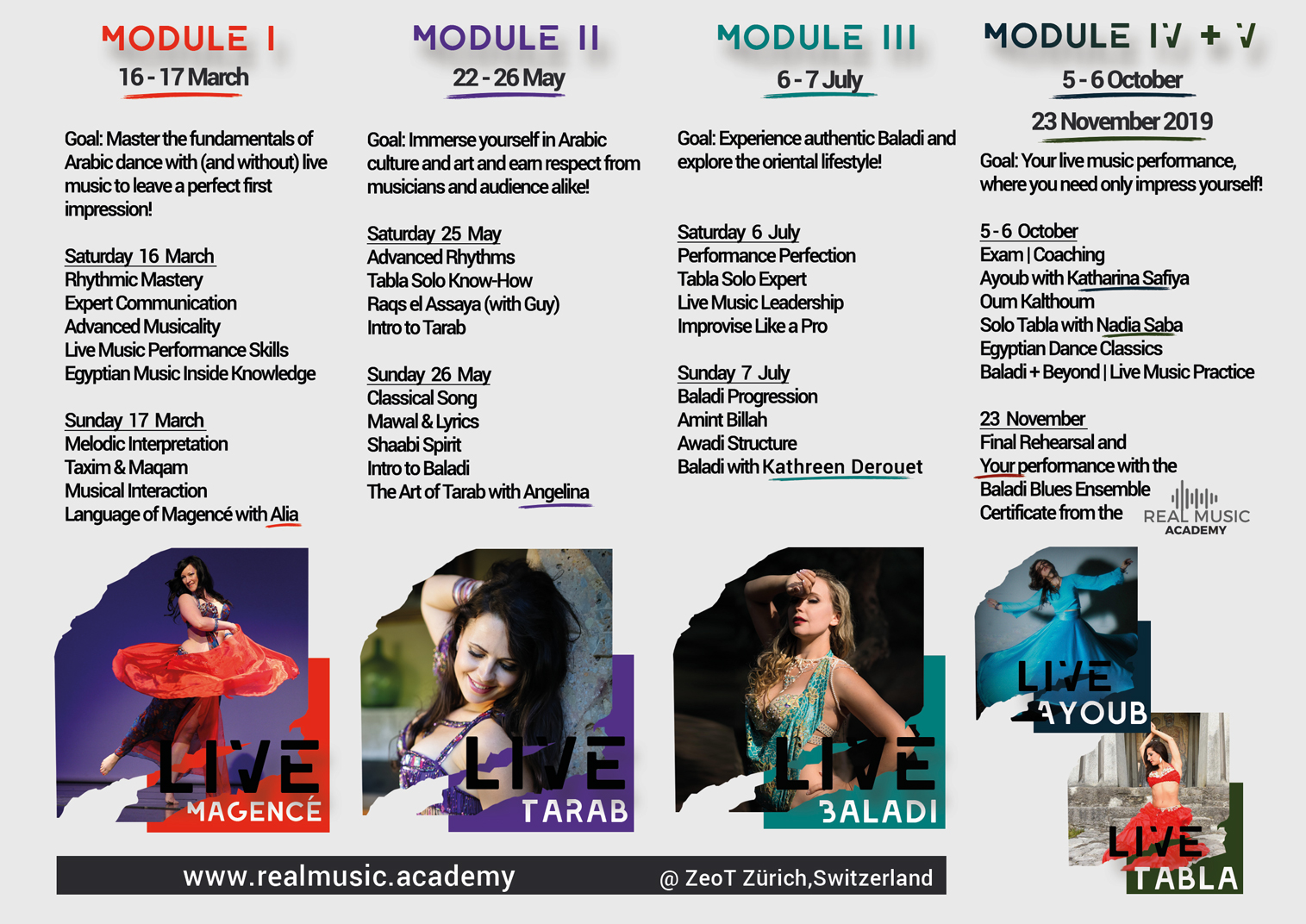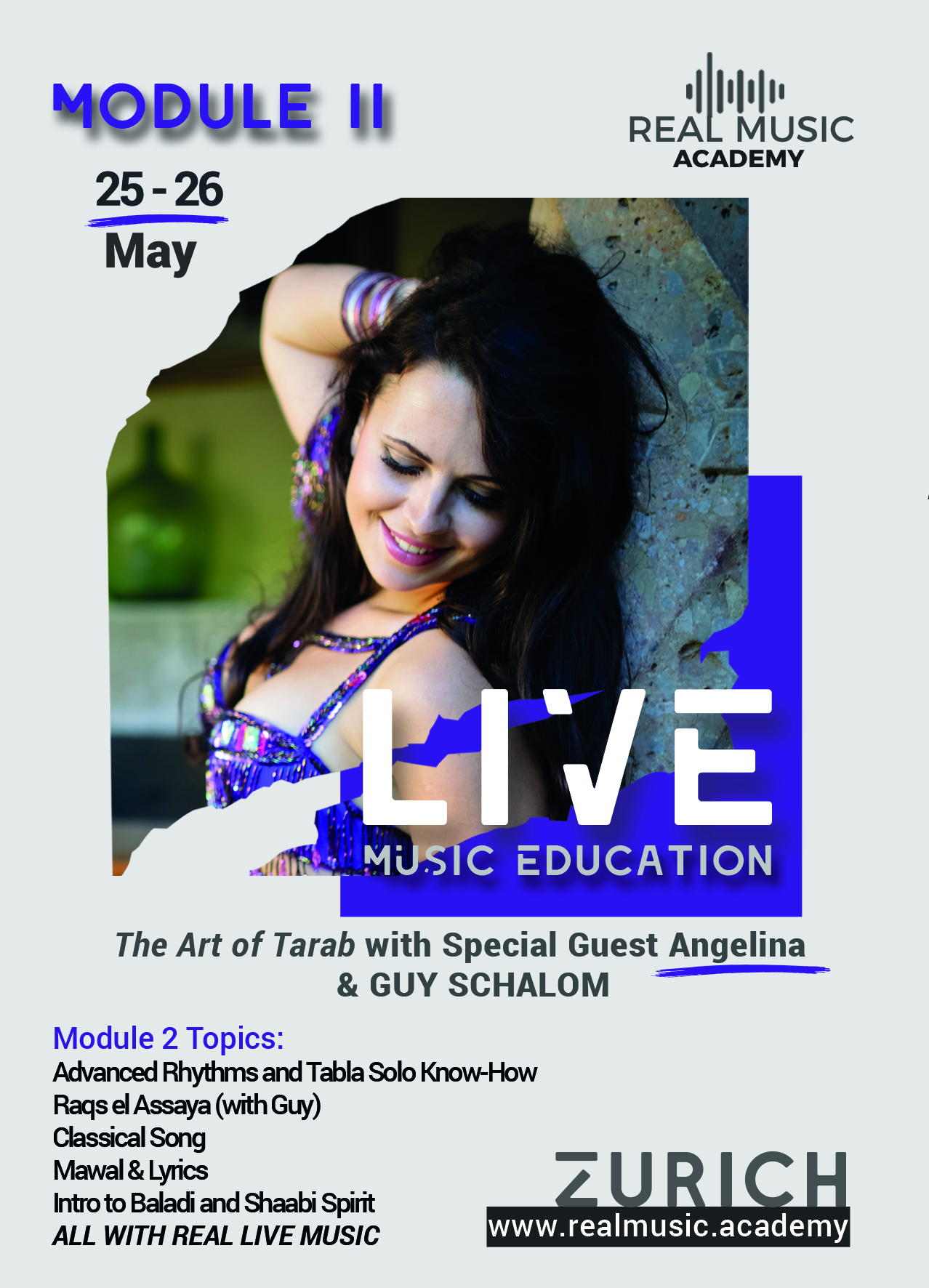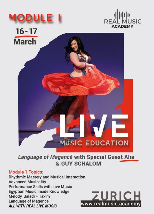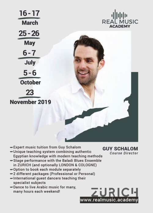 The Real Music Academy: Live Music Dance Development Programme (Zürich) is the most comprehensive LIVE MUSIC education course in existence. Delivered across 5 weekends by Guy Schalom (BA Honours in Music), the programme draws on Guy’s formal education in Europe and Canada as well as his Egyptian heritage to combine authentic Egyptian knowledge and wisdom with modern teaching methods suitable for European dancers.